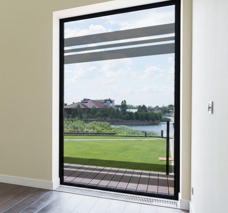 Reference: A53832Transform your space with our Window sticker dark grey horizontal strips. This beautifully designed sticker features sleek horizontal strips in a sophisticated dark grey color, perfect for adding a touch of modern elegance to any window or flat surface. The satin finish ensures that reflections from indoor or outdoor light are minimized, while the vibrant color remains striking and glare-free, allowing you to enjoy its beauty day and night!