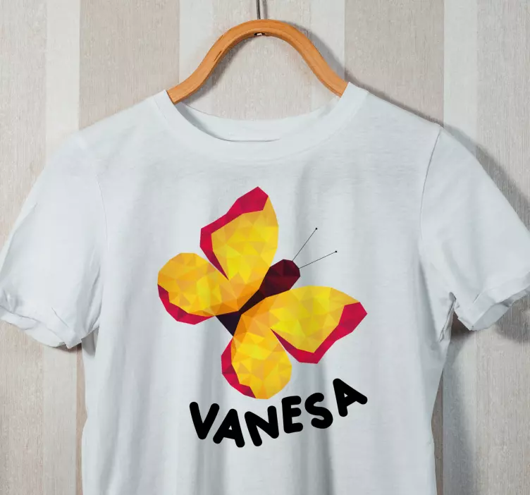 Introducing our Baby t-shirt with bright butterfly design! This delightful shirt features a stunning hand-drawn design of a flying butterfly brought to life with vibrant yellow and red colors. The polygonal style adds a unique twist to the classic insect motif, while the option for a custom name makes it a personal treasure for your little one. Perfect for fun outings, this t-shirt is sure to bring smiles!