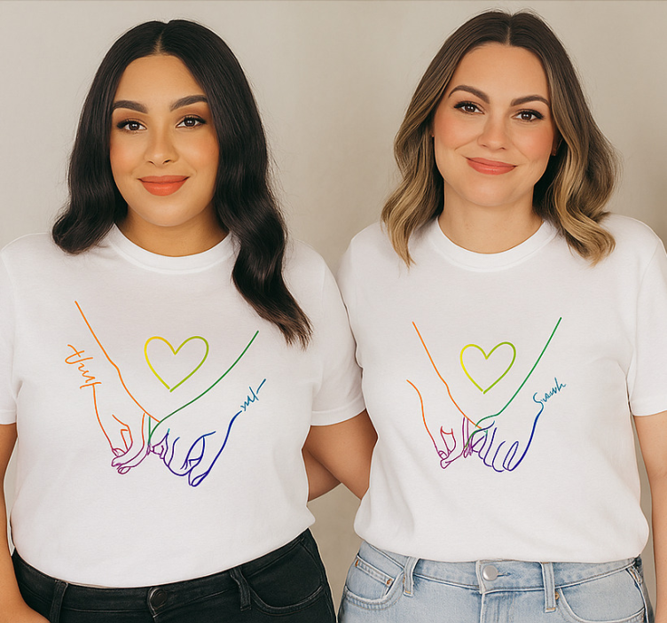 Introducing our stunning Couple t shirts lgbt love heart! This vibrant design features a beautiful love heart symbol that captures the essence of unity and pride in the LGBTQ+ community. Made from a soft blend of 85% cotton and 15% viscose, these t-shirts provide ultimate comfort with a classic round neck and short sleeves. Available in classic colors like black and white, each shirt is a perfect canvas to express love and connection!