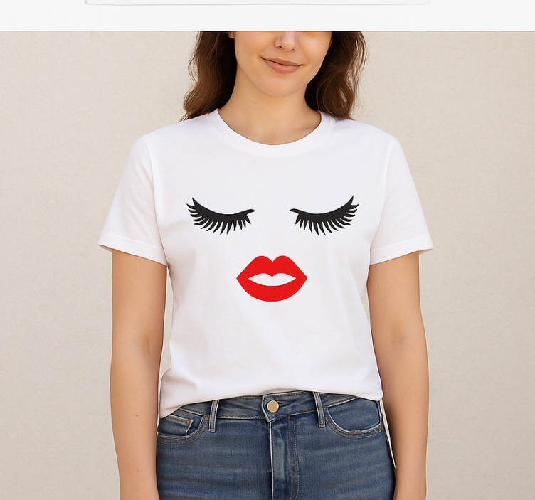 Reference: T5514Introducing our charming Mother and daughter t-shirts lashes and lips, a delightful expression of love and style! This unique design features stunning lash and lip graphics that represent the special bond shared between mothers and daughters. Crafted with care, these t-shirts are made from a blend of 85% cotton and 15% viscose, ensuring a soft and comfortable fit. With a classic round neck and short sleeves, they are perfect for any casual outing!