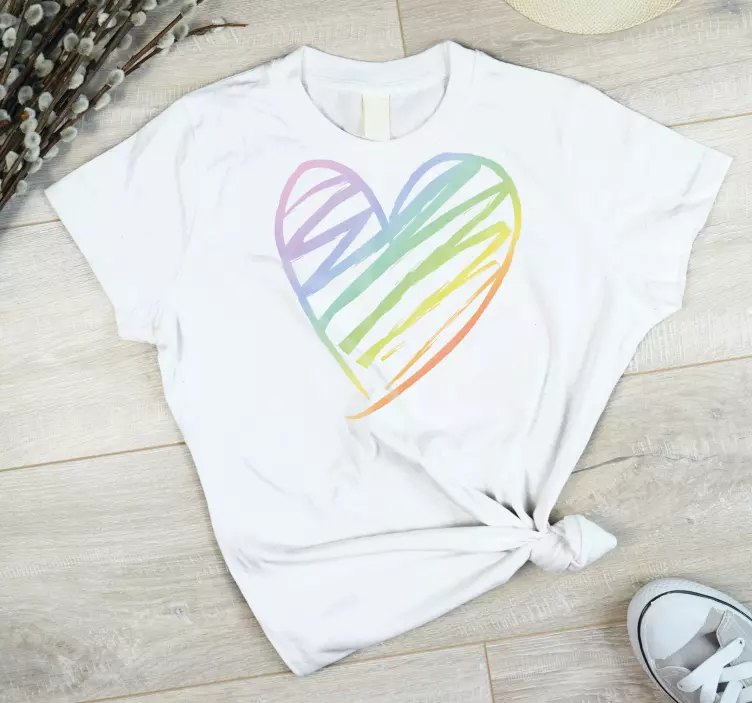 Introducing our Multicolored heart design t-shirt, a vibrant masterpiece that showcases a stunning rainbow of colors blended into a unique heart doodle. This gradient design is not only colorful but also effortlessly stylish, making it the perfect choice for casual outings. Stand out with a piece that is truly unique and expresses your personality!