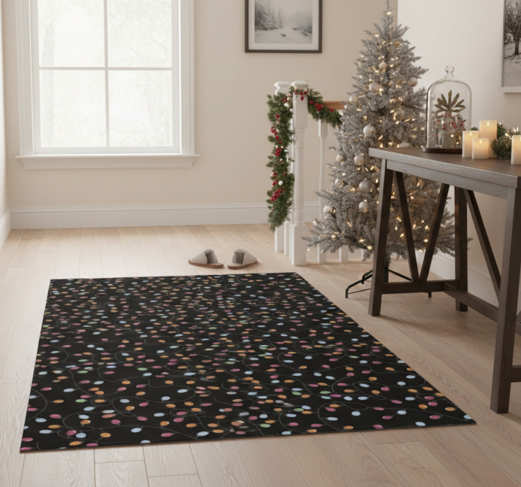 The Christmas vinyl rug happy lights holiday decor Christmas vinyl rug is an essential piece for your holiday decorations. Its captivating design brings warmth and cheer, creating a festive atmosphere that your family and guests will love. Ideal for any room, this rug enhances the spirit of the season while providing comfort underfoot. Let your home shine with joy and holiday spirit!