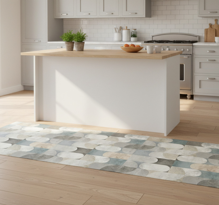 Kitchen vinyl rug in modern pill mosaic design