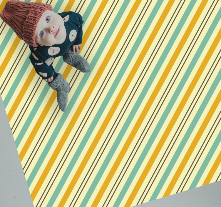 Transform your space with the Lively striped vinyl rug striped vinyl rug, where vibrant colors meet playful patterns! The dynamic design features bold stripes in an inviting mix of yellow and blue, creating a diagonal pattern that adds a cheerful touch to any room. This rug is not just a decorative piece; it's a statement that brings energy and warmth to your home!