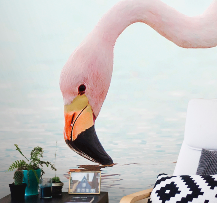 Transform your space with our stunning Animals wall mural flamingo water reflection. This beautiful design showcases a graceful flamingo standing elegantly by a serene lake, surrounded by the calming embrace of nature. The captivating photography captures the delicate balance of the bird’s head mirrored in the shimmering water, creating a scene that breathes life and tranquility into any room. Perfect for nature lovers, this mural is more than just an image; it’s a statement piece that invites the beauty of the outdoors inside!