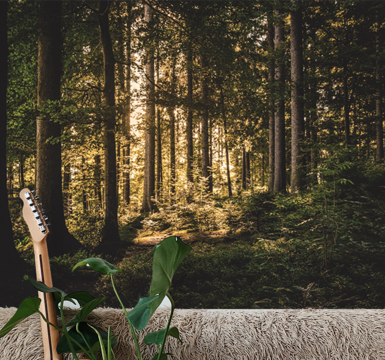 Transform your space with our Forest wall mural bright forest path, a stunning depiction of a vibrant woodland. This design captures the essence of a lush forest, where sunlight filters through towering trees, creating a serene and inviting landscape. Immerse yourself in nature as you bring the beauty of a rainforest into your home!
