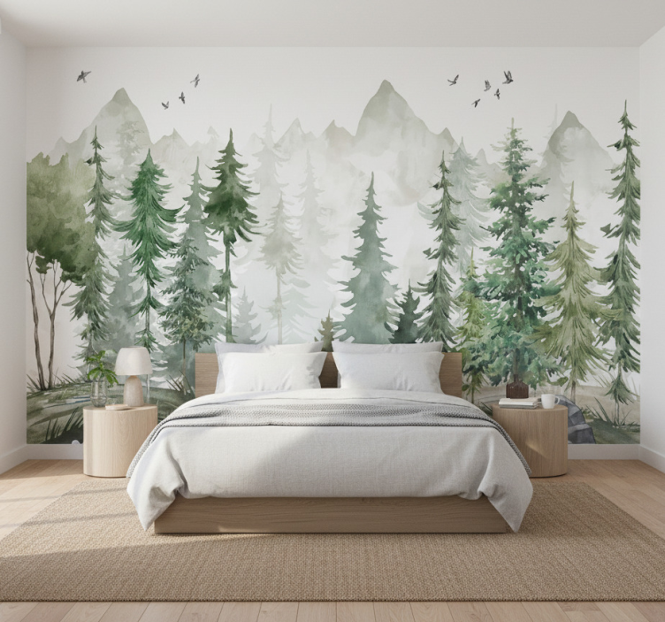 Forest wall mural nordic pine minimalist design
