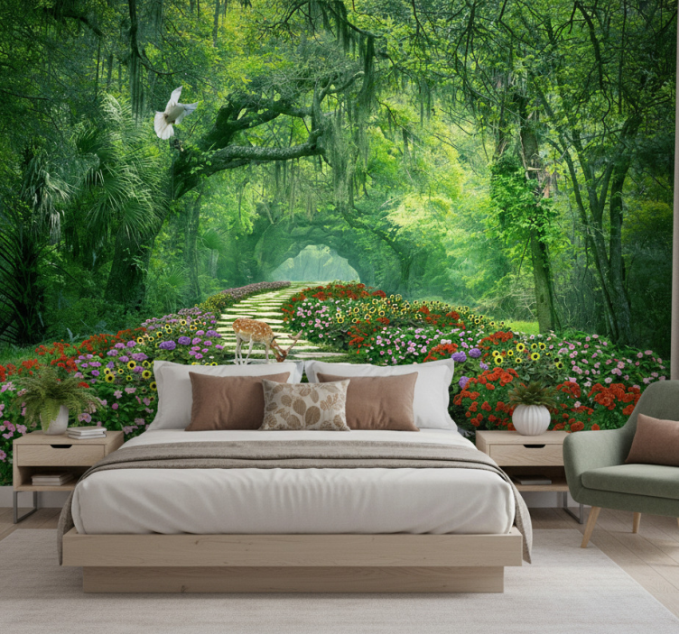 The Forest wall mural surreal woodland path forest wall mural is an exceptional choice for decoration, as it instantly brings the beauty of nature indoors. Imagine walking through a serene forest every day! This mural not only enhances your living space but also evokes feelings of calm and serenity. Its enchanting design transforms any room into a peaceful sanctuary, making it ideal for bedrooms, living rooms, or creative spaces.