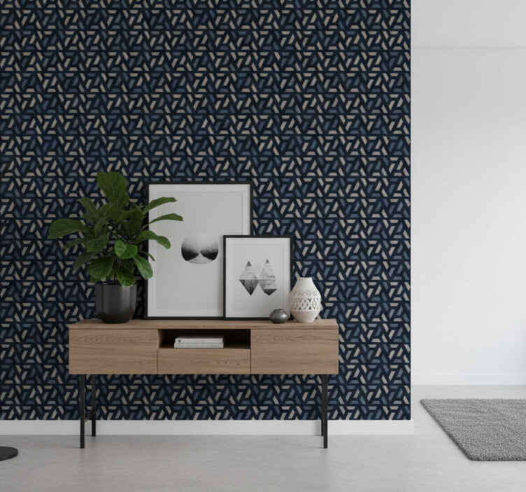 Reference: P11797Introducing our stunning Hallway wallpaper geometric blue and gray triangles, a perfect blend of modern design and elegance. This wallpaper features an eye-catching geometric pattern of blue and gray triangles that effortlessly elevates the aesthetic of any hallway. The matt finish gives it a sophisticated look, while the non-woven material ensures durability and easy maintenance, making it a fantastic choice for your home!