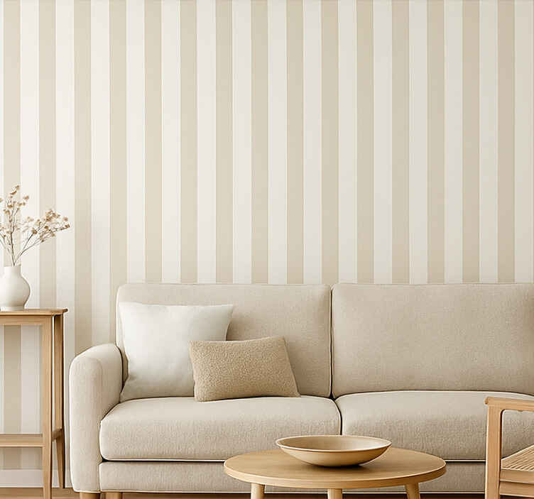 Living area wallpaper neutral vertical stripe pattern