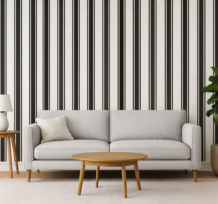 Living area wallpaper vintage black and white stripes