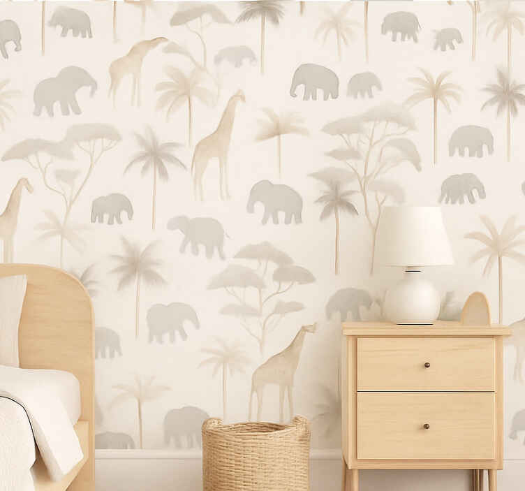 Reference: P13255Transform your child's room into a vibrant jungle paradise with our Savannah kids wallpaper childrens room. This stunning design features playful safari animals, lush greenery, and whimsical patterns that spark imagination and creativity. Crafted with matt colours, this non-woven wallpaper brings a soft and inviting atmosphere to any space, making it the perfect backdrop for your little adventurer's dreams!