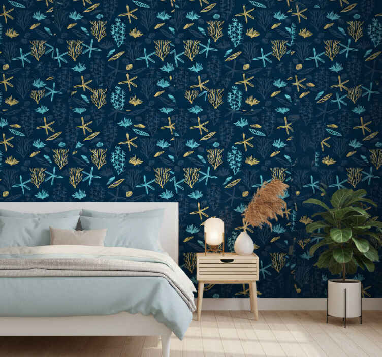 The Wall paper in bedroom colorful underwater design wall paper in bedroom is perfect for those looking to infuse their living space with inspiration and energy. Imagine waking up every day surrounded by the lively hues of the ocean and the whimsical charm of underwater creatures. This wallpaper creates a serene yet vibrant atmosphere, making it an ideal choice for bedrooms that need a touch of magic and creativity!
