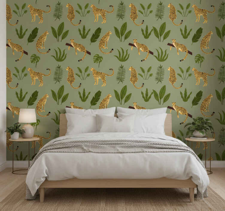 The Wall paper in bedroom floral jungle leopard print wall paper in bedroom is an ideal choice for those who wish to create a lively, inviting atmosphere. This wallpaper serves not only as a decorative element but also as a conversation starter, allowing you to express your style and personality. Elevate your interior design with this enchanting print that brings the essence of the jungle indoors. Imagine waking up each morning surrounded by the lush elegance of floral and leopard prints, inspiring creativity and joy in your daily life!