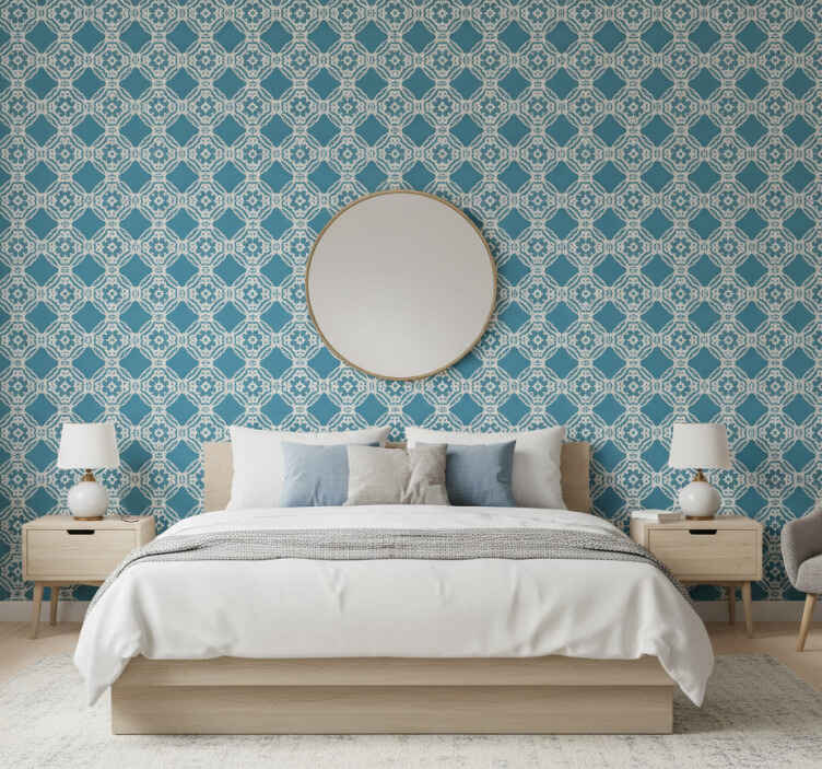 Wall paper in bedroom with intricate geometric design